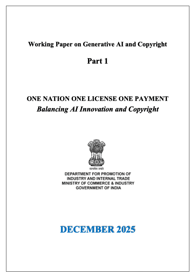 In December 2025, the Department for Promotion of Industry and Internal Trade, Ministry of Commerce and Industry, Government of India published a working paper titled 'Balancing AI Innovation and Copyright', which cites two recent research outputs of Eleonora Rosati: Infringing AI: Liability for AI-Generated Outputs under International, EU, and UK Copyright Law and Copyright Exceptions and Fair Use Defences for AI Training Done for “Research” and “Learning,” or the Inescapable Licensing Horizon.